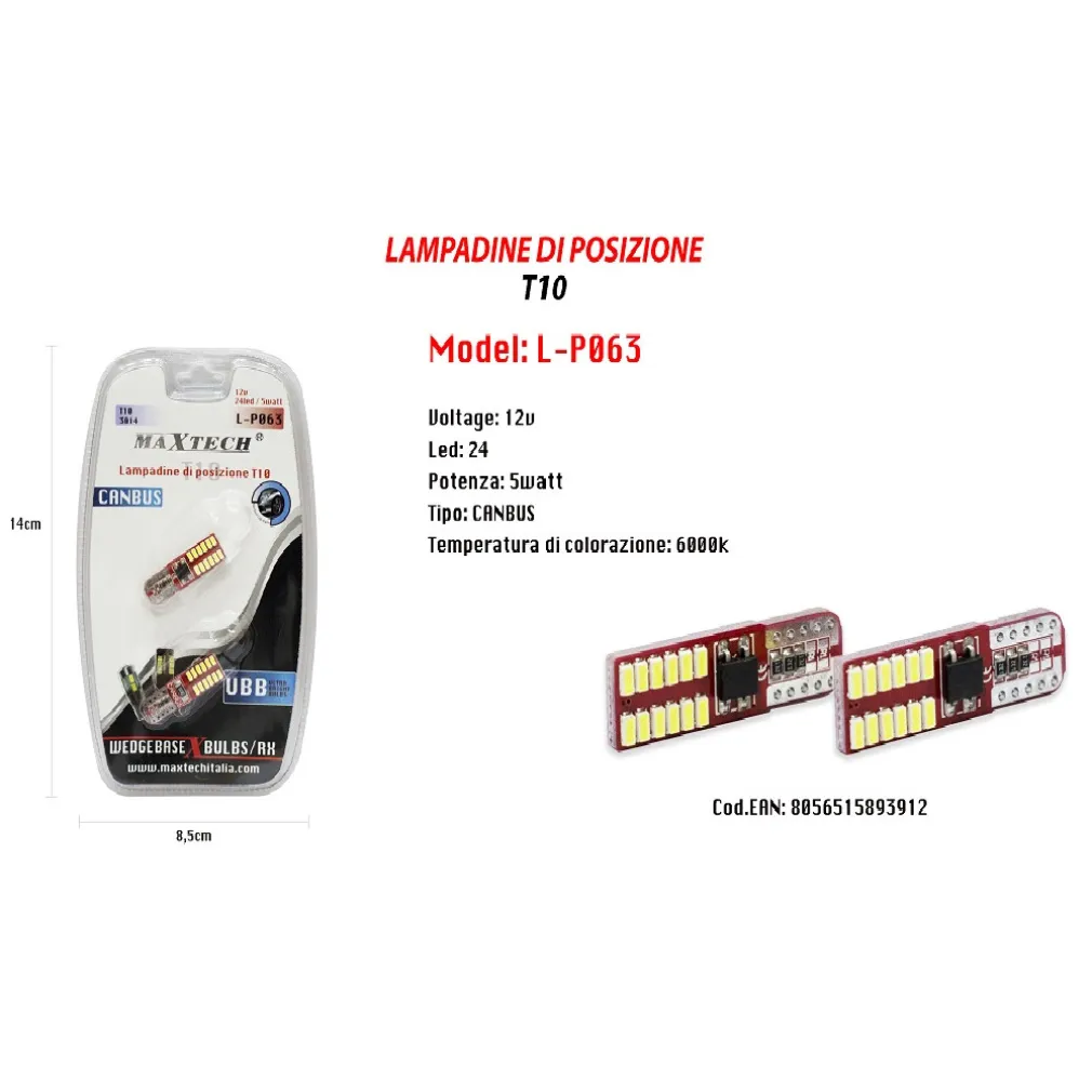 Lampadine di posizione Canbus L-P063 12V 24 LED 5 W 6000K ULTRA LUMINOSE