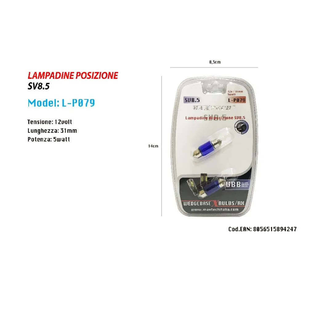 Lampadine di posizione SV8.5 12V 31MM 5W LAMPADINE ULTRA LUMINOSE L-P079