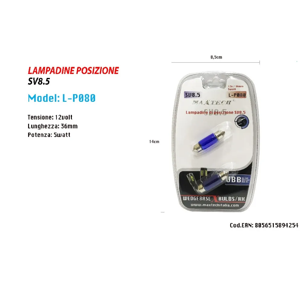 Lampadine di Posizione SV8.5 12V 36MM 5W L-P080: Illumina il Tuo Viaggio con Brillantezza