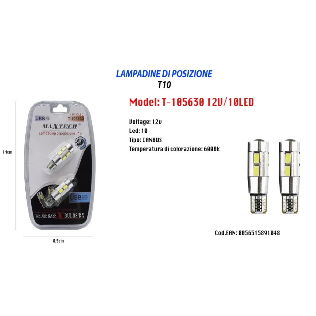 - Massima luminosità: Le lampadine T10 T-105630 sono dotate di 10 LED ultra luminose, che garantiscono una visibilità ottimale anche nelle condizioni di guida più difficili.