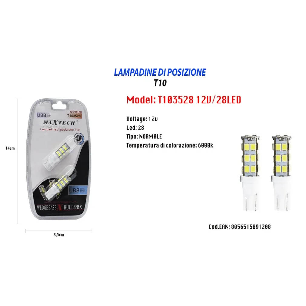 Lampadine di Posizione T10 T103528 12V 28LED 6000K – Lampadine Ultra Luminose