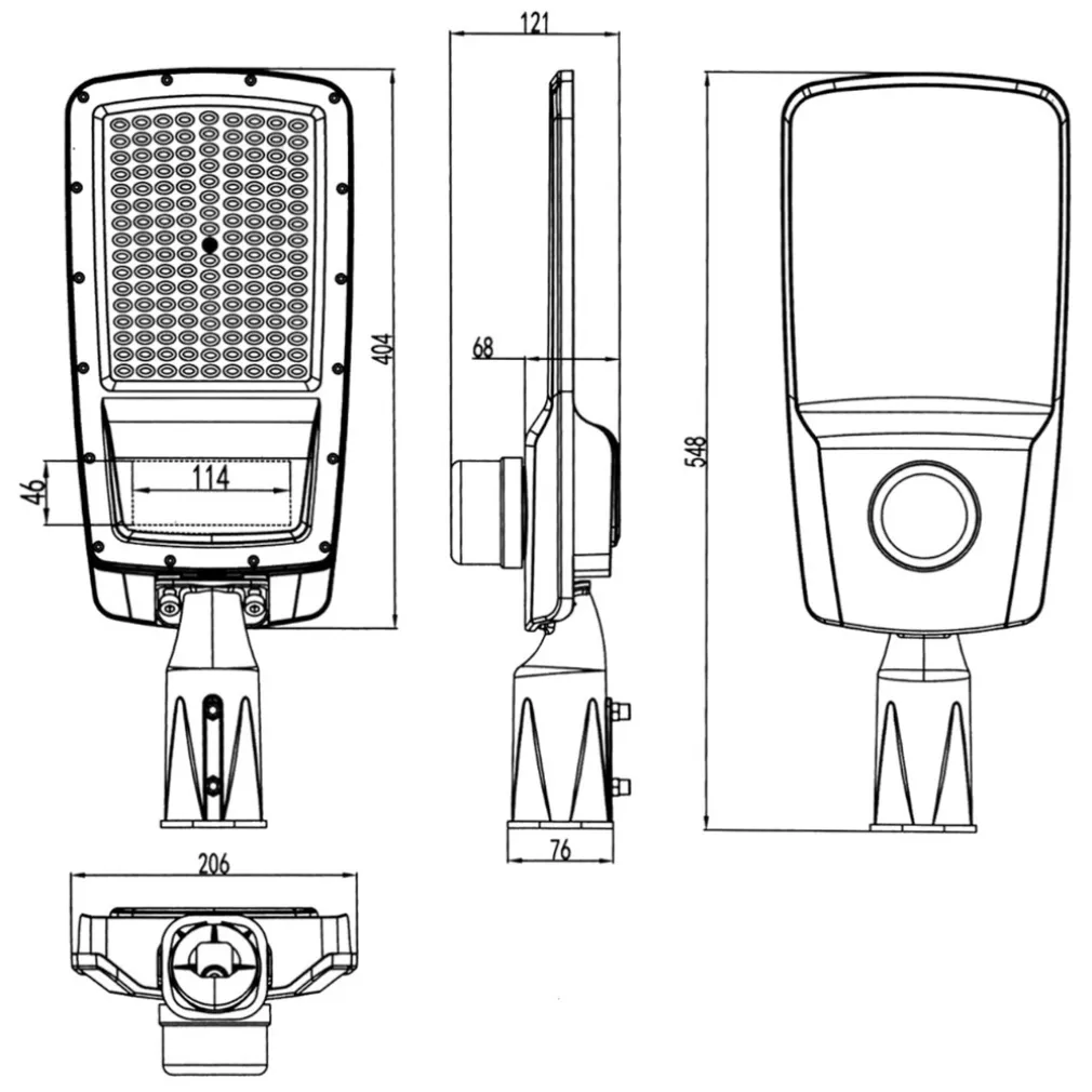 Grazie alla sua potenza e versatilità, questo lampione armatura stradale LED 100W con sensore crepuscolare è perfetto per: