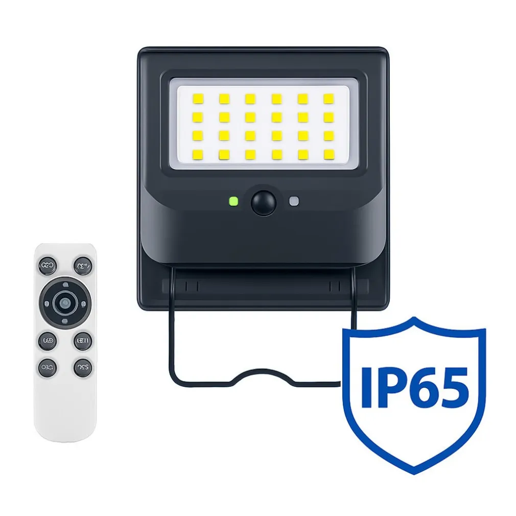Con il telecomando in dotazione puoi controllare facilmente tutte le funzioni del faro: impostare timer di 3, 5 o 8 ore, regolare la luminosità o scegliere la modalità di accensione automatica. Una gestione comoda e intuitiva per adattarsi ad ogni esigenza d’uso, sia in ambito residenziale che professionale.