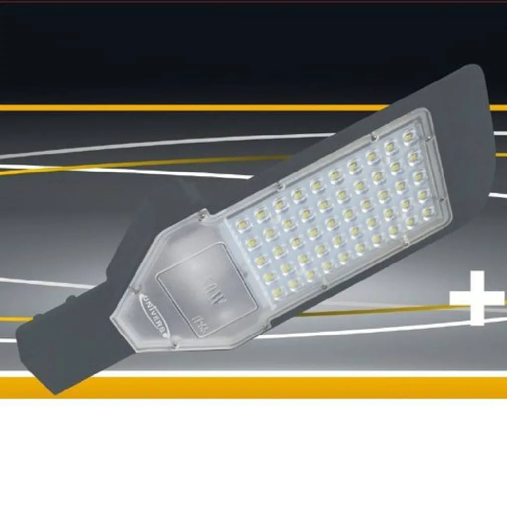 Lampada led adatta per l’illuminazione stradale, piste ciclabili, aree commerciali, parcheggi ma anche giardini. Struttura in alluminio pressofuso adatto agli ambienti esterni con un grado di protezione IP65. Luce led smd bianca fredda 6500° Kelvin dalla potenza di 50 watt, fornita con staffa tubolare per il fissaggio a parete.
