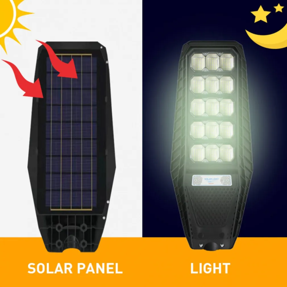 LAMPIONE STRADALE LUCE ENERGIA SOLARE LED 400WATT SENSORE PIR STAFFA TELECOMANDO