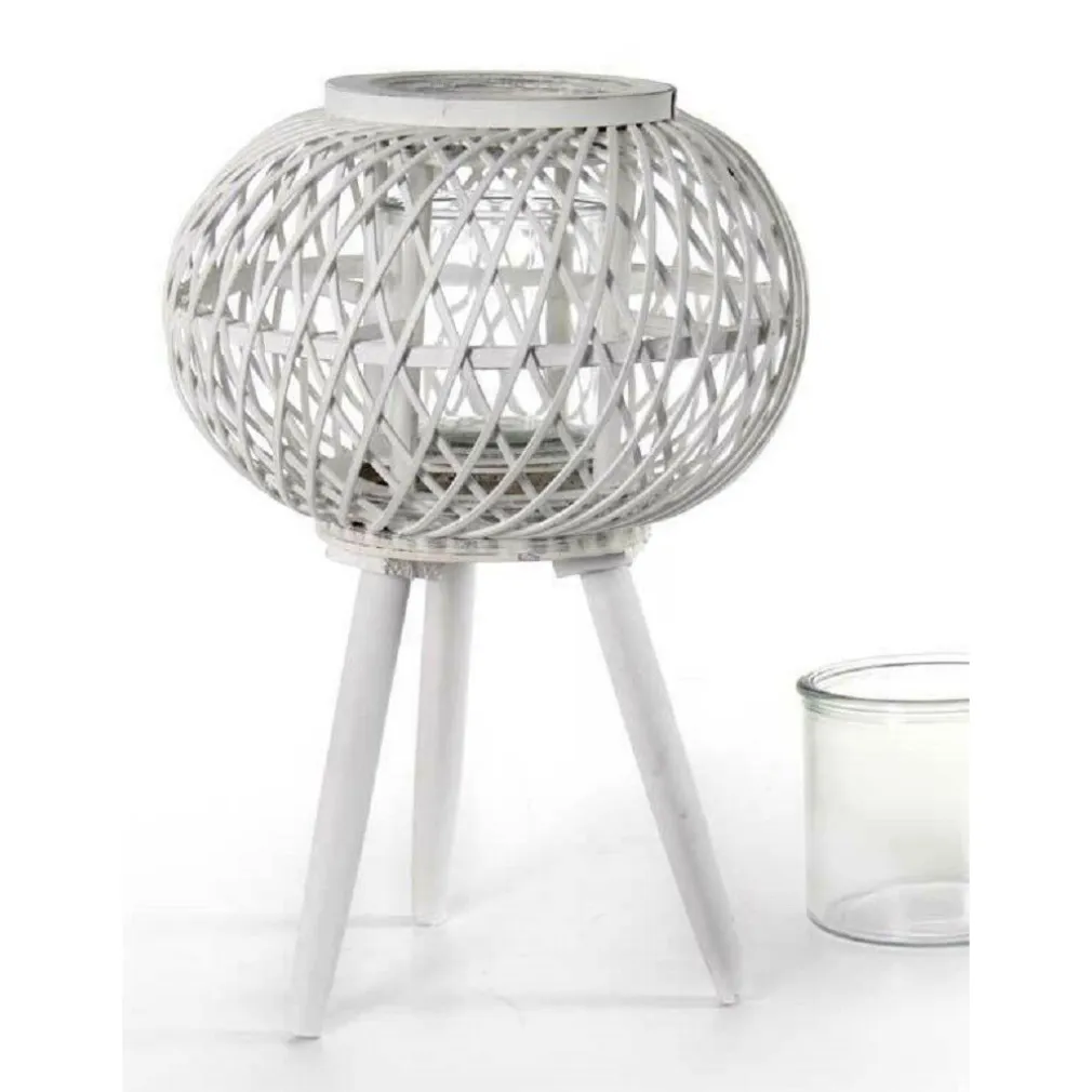 Porta a casa la magia della luce e del design con la Lanterna Portacandela con Piedi Tonda in Legno Bambù Vetro Bianco. Aggiungi calore e stile al tuo spazio oggi stesso!