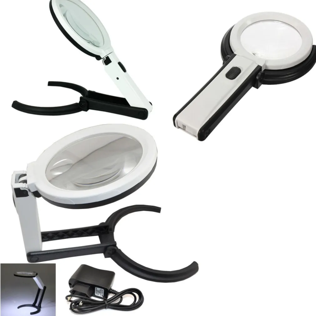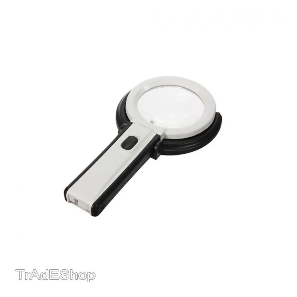 Lente di ingrandimento con luce led di colore bianco professionale da tavolo con pulsante di accensione e 10 led bianchi per una corretta illuminazione della zona da ingrandire.