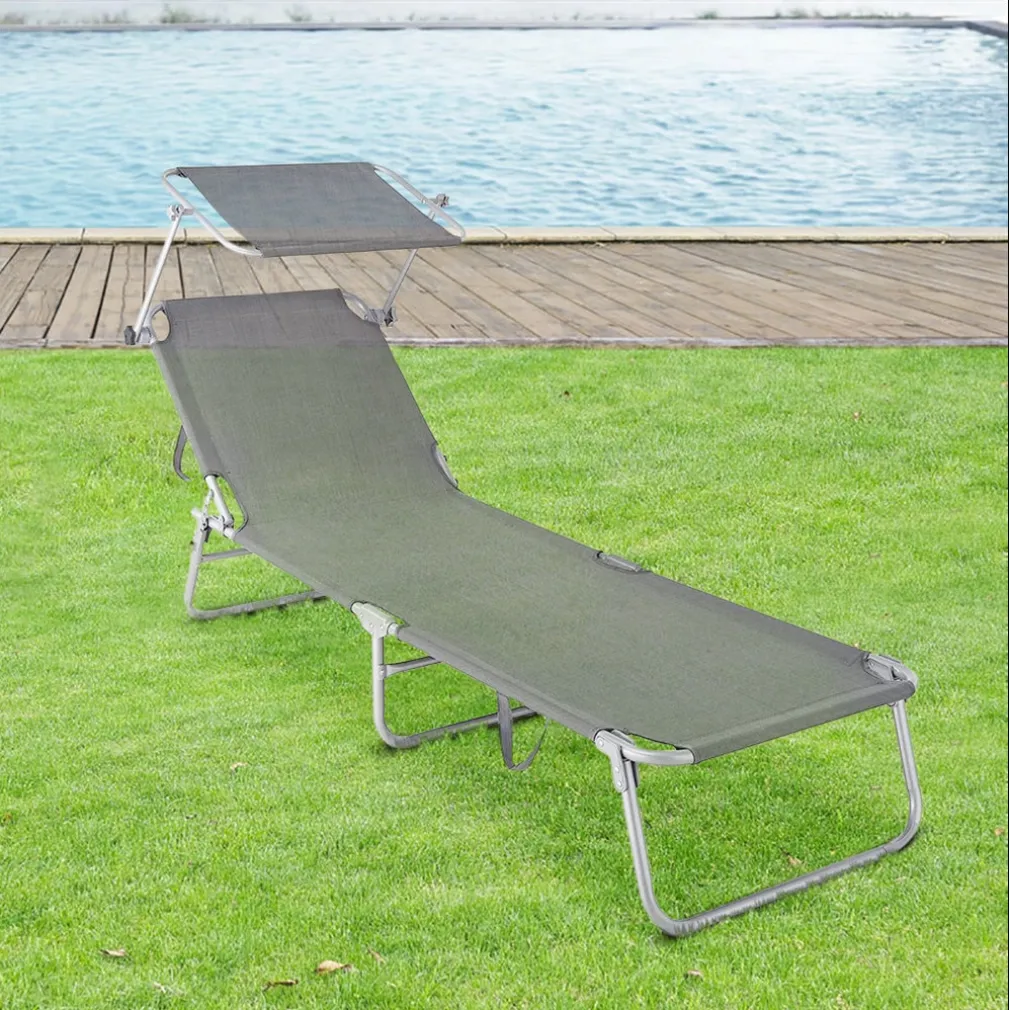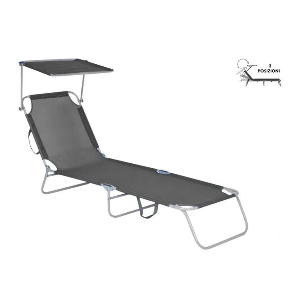LETTINO IN TEXTILENE CON PARASOLE GRIGIO MARE GIARDINO SCHIENALE REGOLABILE 281013