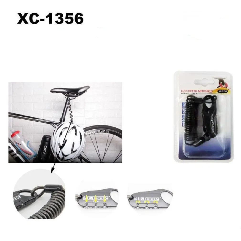 LUCCHETTO ANTIFURTO CAVO A MOLLA SPIRALE PER MOTO BICI CASCO COMBINAZIONE XC1356