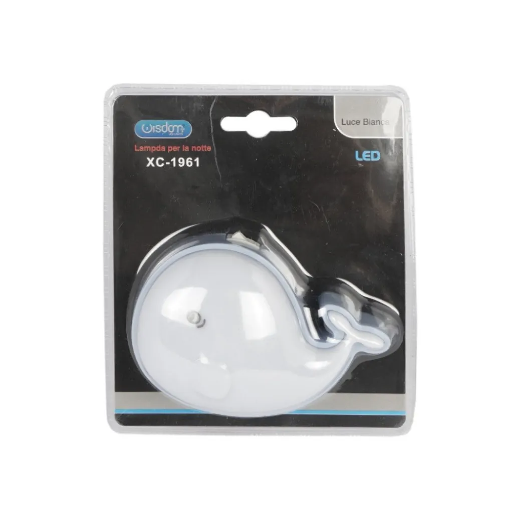 Briosa luce notturna, ideale per illuminare con luce soffusa le camerette dei bimbi assicurando una piacevole visibilità notturna. Diretta entrata in corrente e tasto on/off presente sulla luce notturna a led.