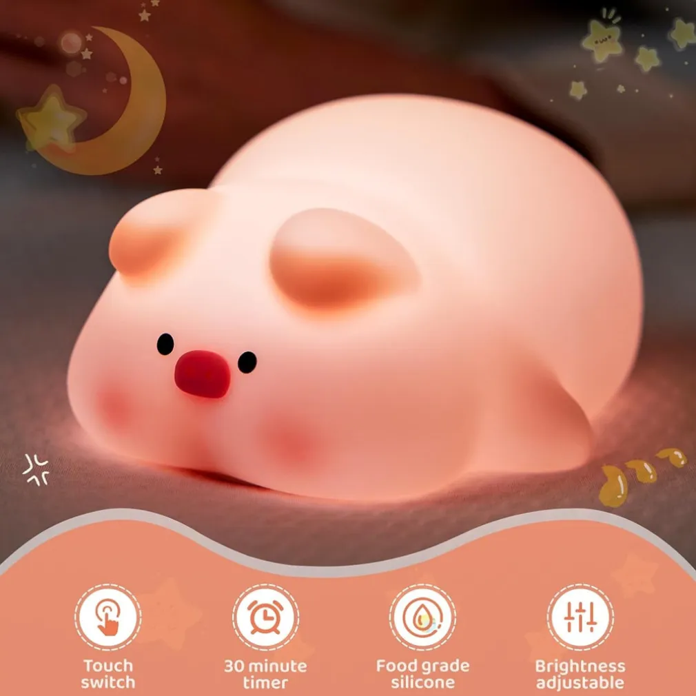 Luce Notturna Forma Maiale per Bambini in Silicone Dimmerabile – Lampada Ricaricabile