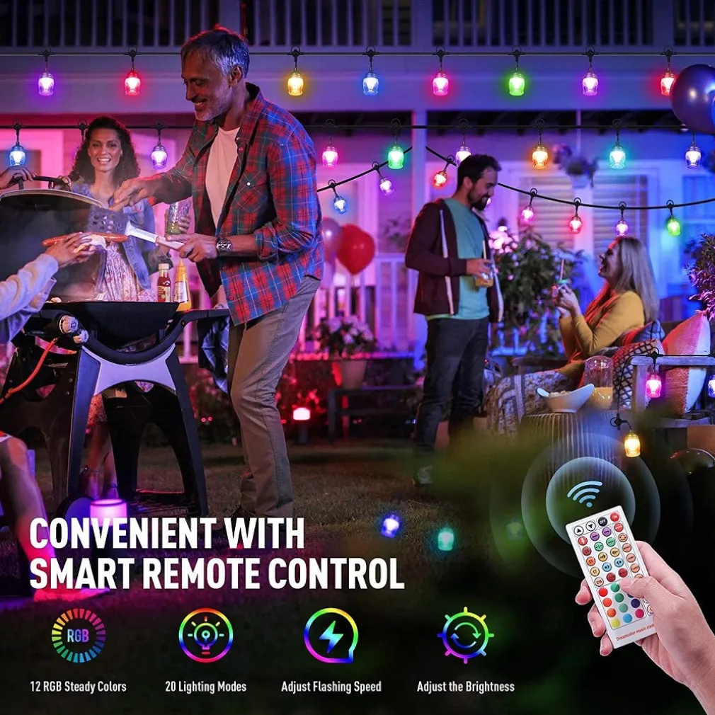 Rendi la tua vita più comoda con il telecomando intelligente, con il telecomando wireless, le nostre luci a LED per esterni con telecomando sono molto comode per regolare diverse modalità (flash, meteor, auto, jump…); controllare la velocità e la luminosità. I telecomandi Advance RF hanno una distanza maggiore e una maggiore stabilità rispetto ad altri telecomandi con tecnologia IR. Aggiungi facilmente un’atmosfera unica a bar, cortili, portici, balconi, ponti, patii, pergole, gazebo, bar, ristoranti, matrimoni e anniversari. Risparmio energetico con funzione dimmerabile, le luci delle corde esterne dimmerabili progettate con 9 sfere di lampada RGB per lampadina, supportano la luce bianca e calda e 12 colori RGB per qualsiasi attività, puoi regolare tutta la luminosità liberamente dallo 0% al 100% con il telecomando controllo, crea un ambiente perfetto per tutte le occasioni come cortile, bistrot, veranda, giardino, bar, feste.