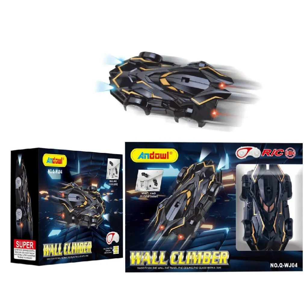 L’auto Wall Climber di Andowl è un fantastico giocattolo che sfida la gravità. Può essere applicato su pareti, soffitti e qualsiasi altra superficie piana grazie a un’esclusiva tecnologia di aspirazione. L’auto è controllata con un telecomando, permettendo al tuo bambino di fare tutti i tipi di acrobazie e divertirsi! Il motore di aspirazione è particolarmente potente in modo che l’auto antigravitazionale possa andare su qualsiasi superficie piana come pareti, vetro e persino sul soffitto! Corpo ultraleggero ma resistente e antiurto che non si rompe se cade dal soffitto o dalla parete. Viene fornito con telecomando a infrarossi, puoi controllare le velocità e le direzioni di corsa. Tecnologia di aspirazione: consente al pilota di arrampicarsi su pareti verticali e pareti di vetro a piena velocità e di guidare a testa in giù sui soffitti. Ruota di 360 gradi durante la corsa, l’avanzamento e la retromarcia. Ricarica le auto dal telecomando a infrarossi.