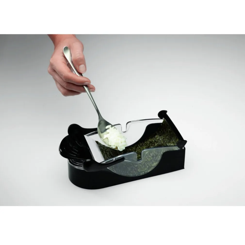 Basta infatti inserire nel contenitore una base di riso per Sushi, mettere al centro quello che si vuole avvolgere, bloccare il contenitore e tirare la linguetta di perfect roll.