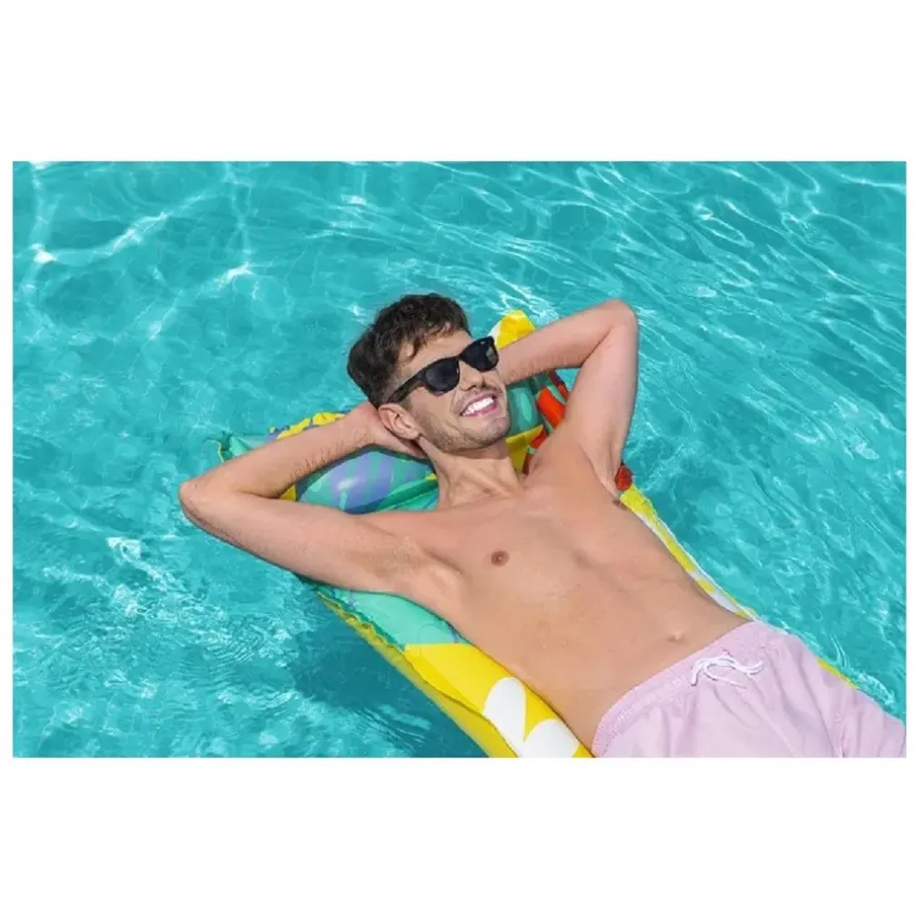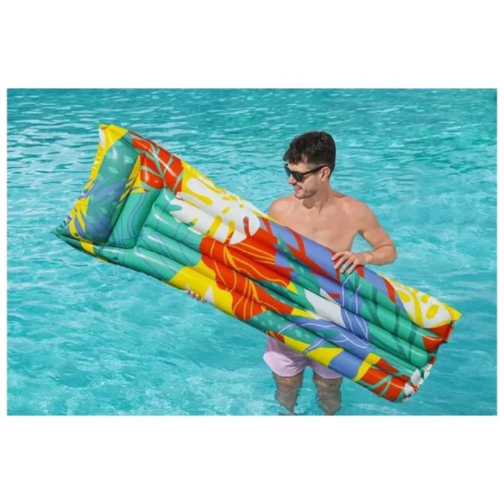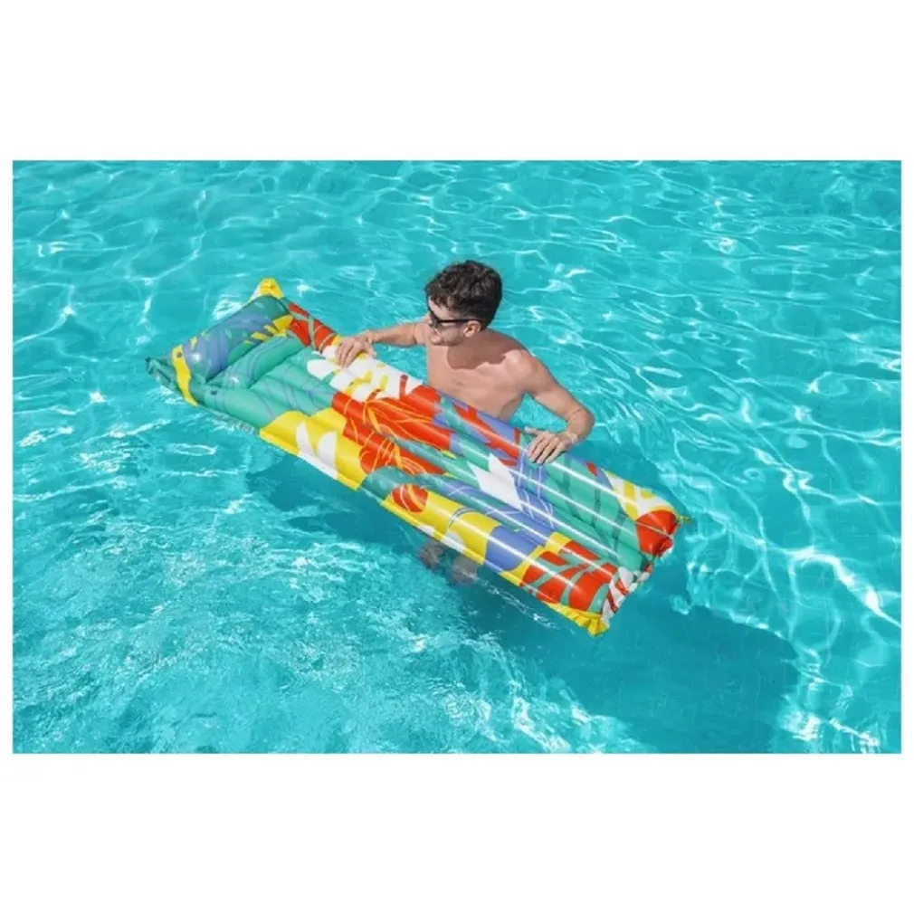 Questo innovativo materassino è disponibile in design assortiti, è dotato di un cuscino a 2 camere per un maggiore comfort e supporto mentre ti rilassi al sole.