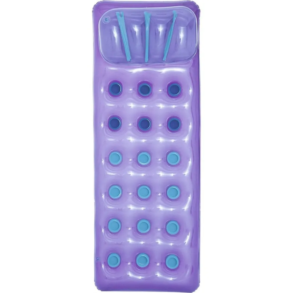 MATERASSINO GONFIABILE CON CUSCINO 18 BUCHI 188X71 CM – COLORI ESTIVI PER PISCINA E MARE