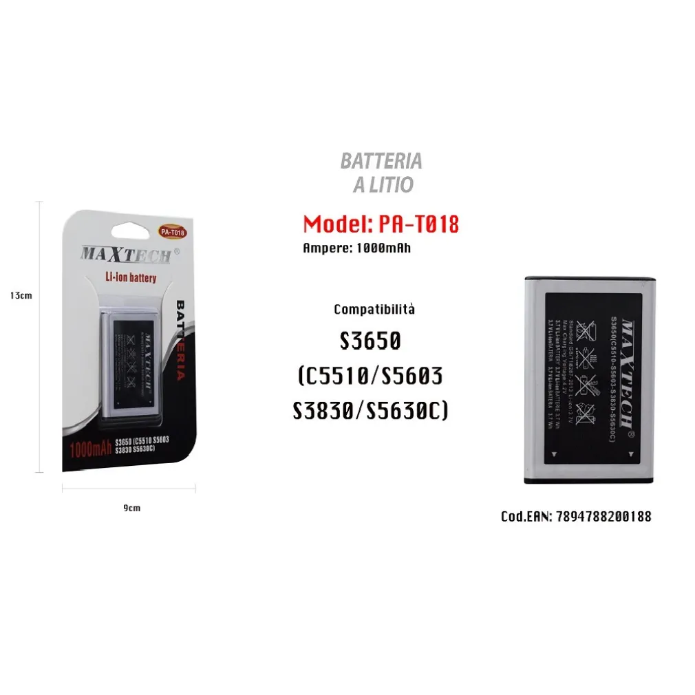 Acquista oggi la batteria MAXTECH PA-T018 e assicurati di avere sempre l’energia necessaria per rimanere connesso e produttivo con il tuo smartphone Samsung S3650.