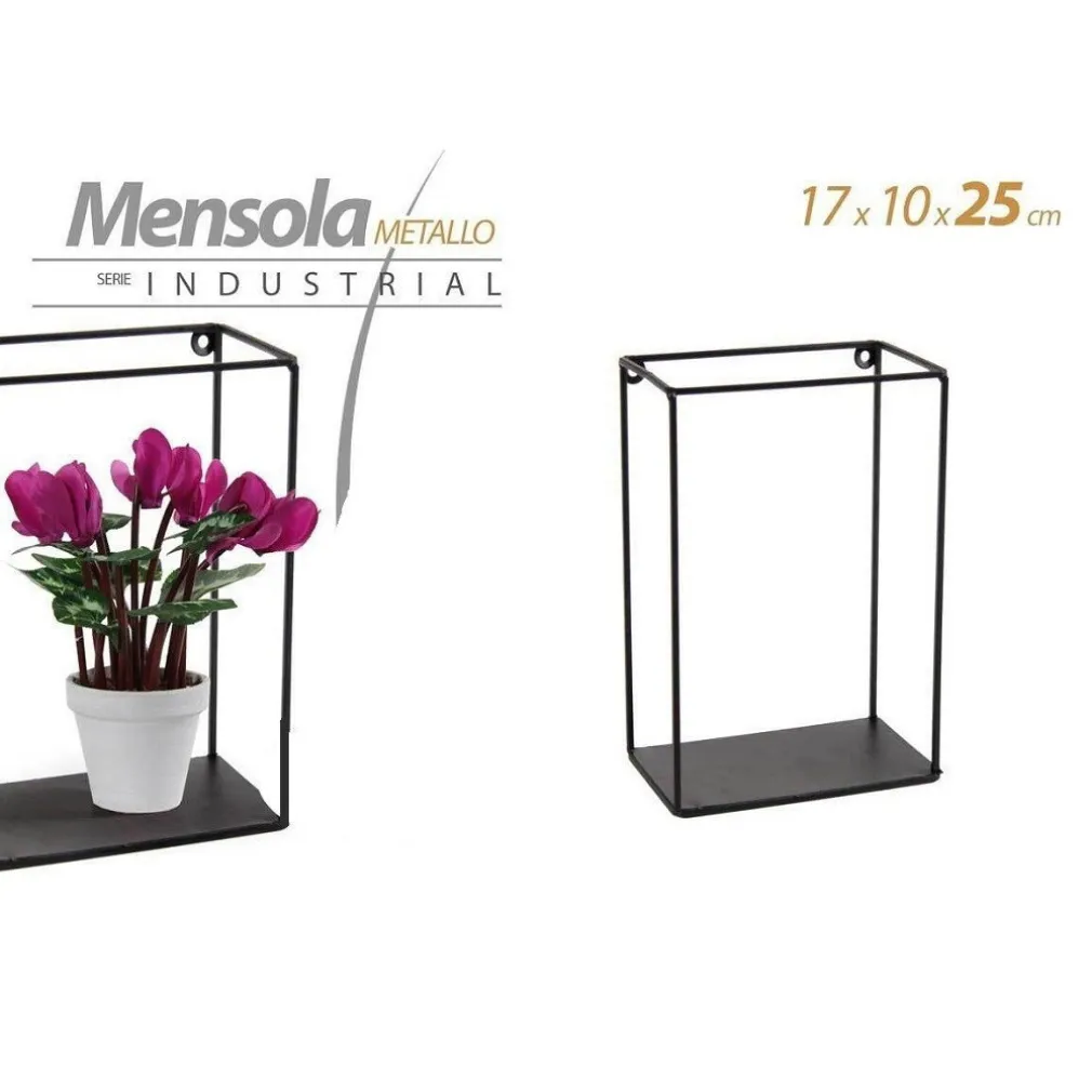 MENSOLA BACHECA PARETE RETTANGOLARE IN METALLO 17X10X25CM NERO INDUSTRIAL 822179