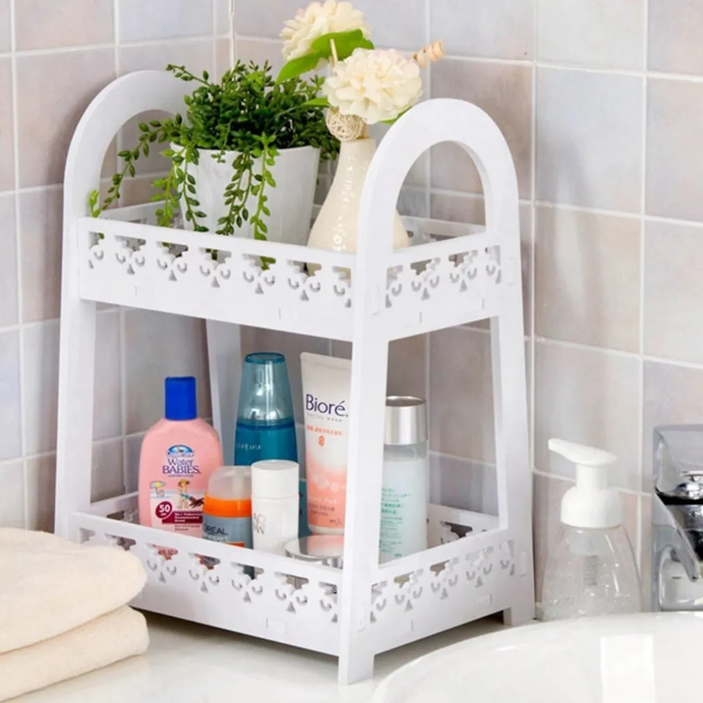 Puoi usarla per cosmetici, articoli da cancelleria, piccoli elettrodomestici, spezie, saponi, asciugamani, libri e tanto altro. La struttura a doppio ripiano garantisce spazio e accessibilità.