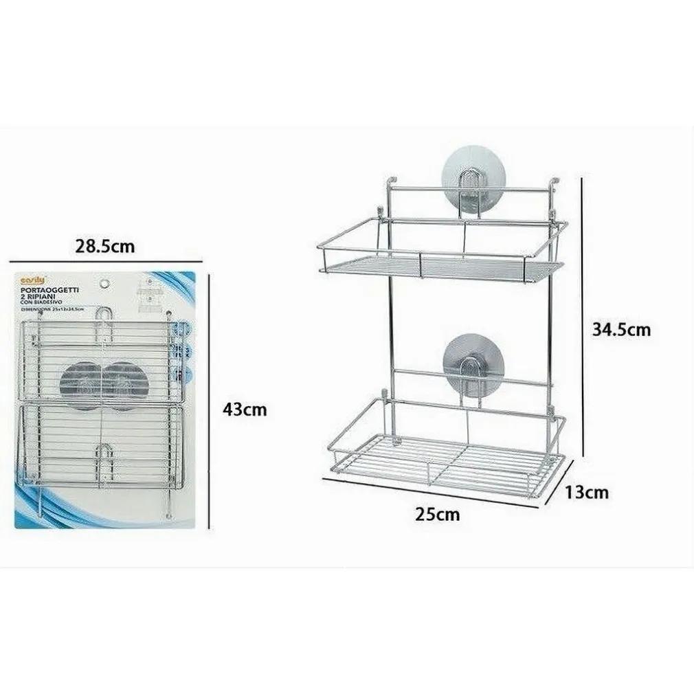 MENSOLA RETTANGOLARE PORTAOGGETTI 2 RIPIANI MONTAGGIO PARETE CON BIADESIVO 79848