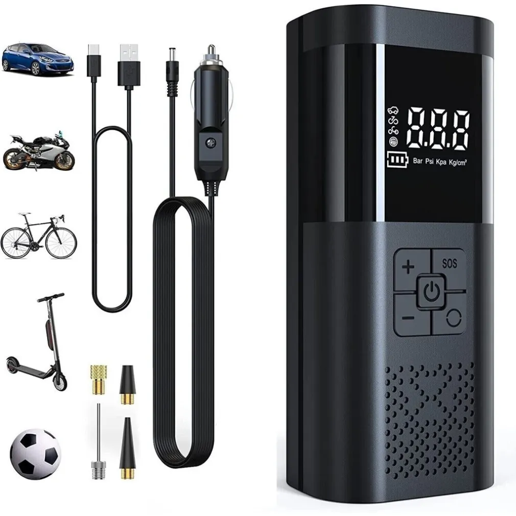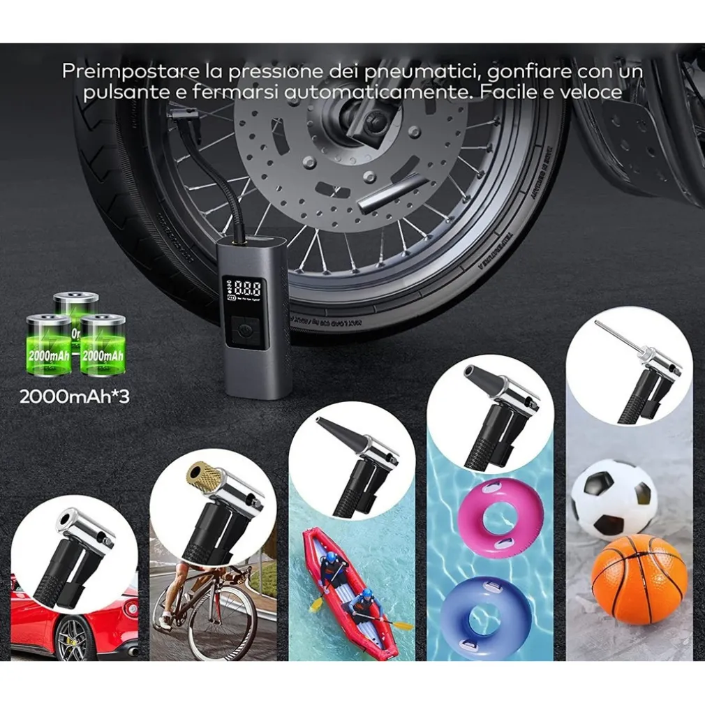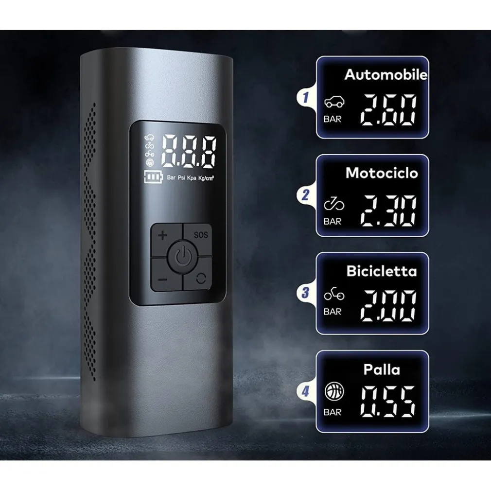 MINI COMPRESSORE AD ARIA PORTATILE GONFIATORE RICARICABILE DISPLAY LED AUTO