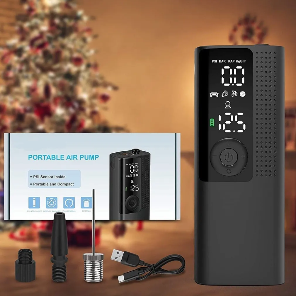 Questa è una pompa ad aria portatile che può contenere la trachea e la funzione di sgonfiaggio. Batteria ricaricabile incorporata, interfaccia di ricarica TYPE-C, dimensioni ridotte, peso leggero, aspetto nuovo, ampio schermo a doppio display e altri vantaggi. Allo stesso tempo, ha un sensore di pressione dell’aria ad alta precisione incorporato e utilizza cinque tipi di interfacce operative per l’impostazione della pressione dell’aria che sono convenienti per gli utenti da utilizzare in sicurezza. L’interfaccia interattiva è: ingranaggio a sfera, abbigliamento da bicicletta, abbigliamento da moto, abbigliamento da auto, equipaggiamento personalizzato (0-120PSI). L’utente può regolare la marcia corrispondente per gonfiare l’oggetto gonfiabile. Quando la pressione dell’aria raggiunge il valore di impostazione del sistema, la pompa dell’aria interromperà automaticamente il gonfiaggio, fornendo un’esperienza sicura e affidabile per gli utenti che non hanno familiarità con l’impostazione della pressione dell’aria. Pompa d’aria portatile intelligente, display a grande schermo, cinque tipi di interfaccia operativa per l’impostazione della pressione dell’aria, funzionamento più umano e più sicuro, in grado di rilevare il valore accurato della pressione dei pneumatici, il massimo può caricare 120PSI, è un prodotto necessario per la tua casa.