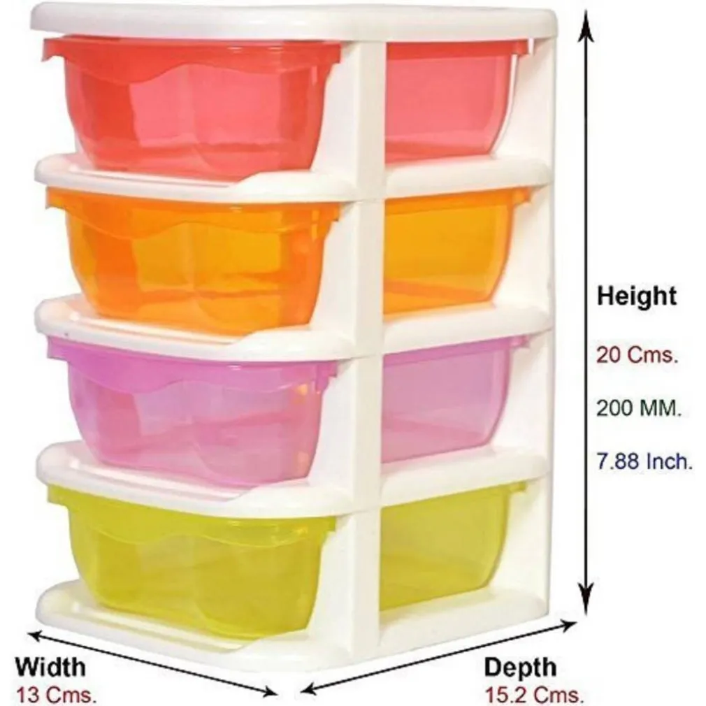 Scatola di cassetto multicolore di qualità durevole per mantenere piccole cose utili organizzate in un unico posto. Questa scatola di 4 cassetti può essere utilizzata alla scrivania o al tavolo da toeletta di casa per riporre più cose utili. È realizzato in materiale plastico ad alta resistenza in modo che duri a lungo. Adatto per soggiorno e materiale da camera da letto, plastica senza scaffali. Bambini piccolo cassetto multiuso si possono tenere farmaci, accessori per bambini, pettine per bambini, bavaglini, cucchiai. Piccole dimensioni per adattarsi perfettamente alla tua almirah, puoi mantenere le orecchie, gli anelli. Il piccolo cassetto sembra molto attraente, utile per piccole aree, grande uso come uso per pentole, perni di puntale, pennarelli. Il cassetto carino di piccole dimensioni occupa molto meno spazio nel tuo ufficio o in casa. Uso per mantenere i tuoi gioielli, cosmetici, stazionari. Inoltre può essere utilizzato per rimanere alla vostra postazione di lavoro per mantenere le vostre cose organizzate.