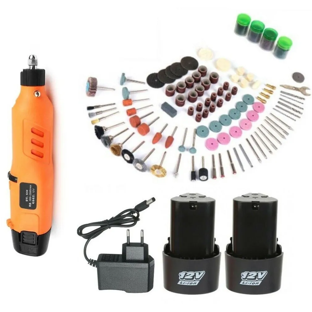 Mini trapano smerigliatrice a doppia batteria 12V 2Ah tipo dremel 148 accessori