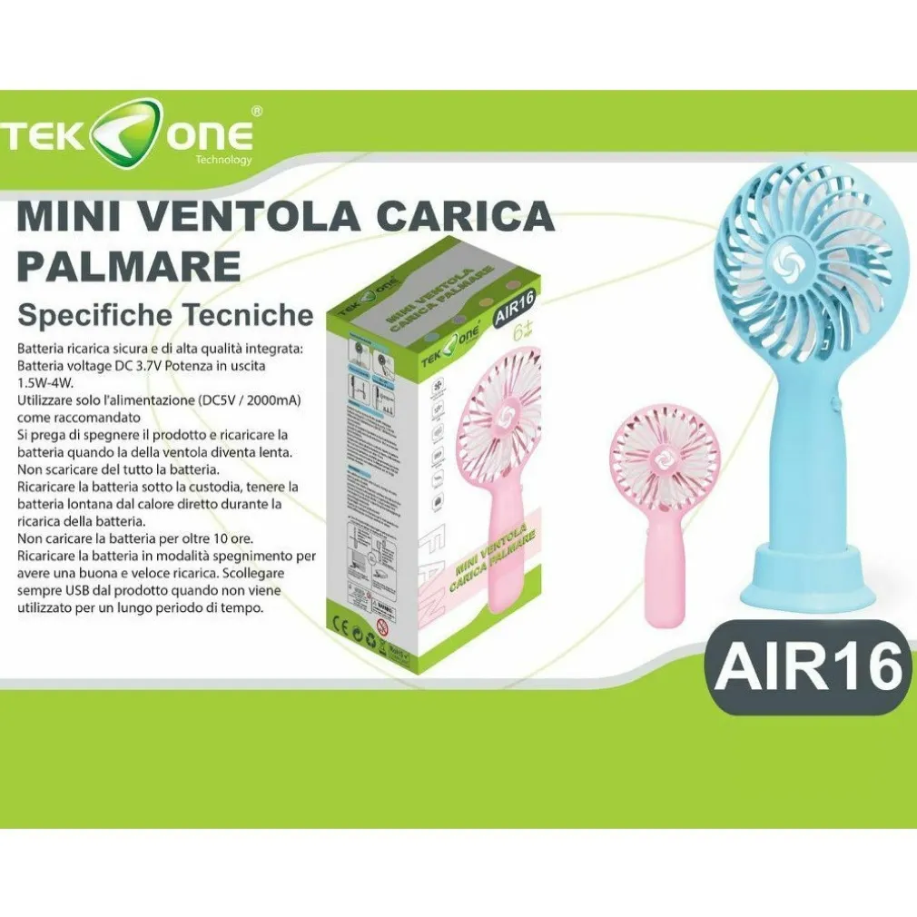 MINI VENTILATORE TEKONE AIR16 PORTATILE VENTOLE CARICA PALMARE