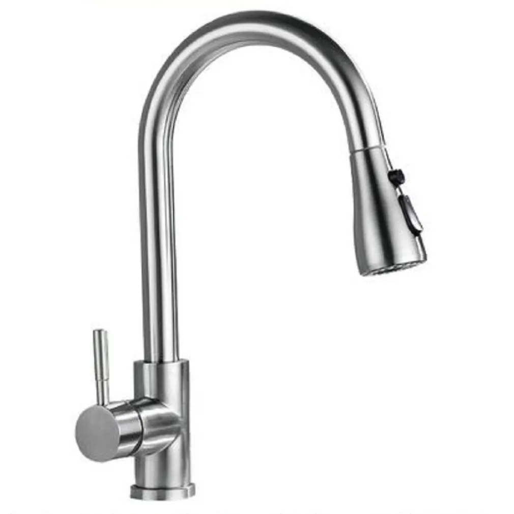 Rubinetto lavello cucina con doccetta estraibile, realizzato in acciaio inox con finitura satinata.