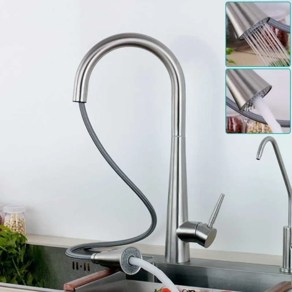 Miscelatore Rubinetto Monocomando Lavello Cucina satinato canna alta con doccetta estraibile