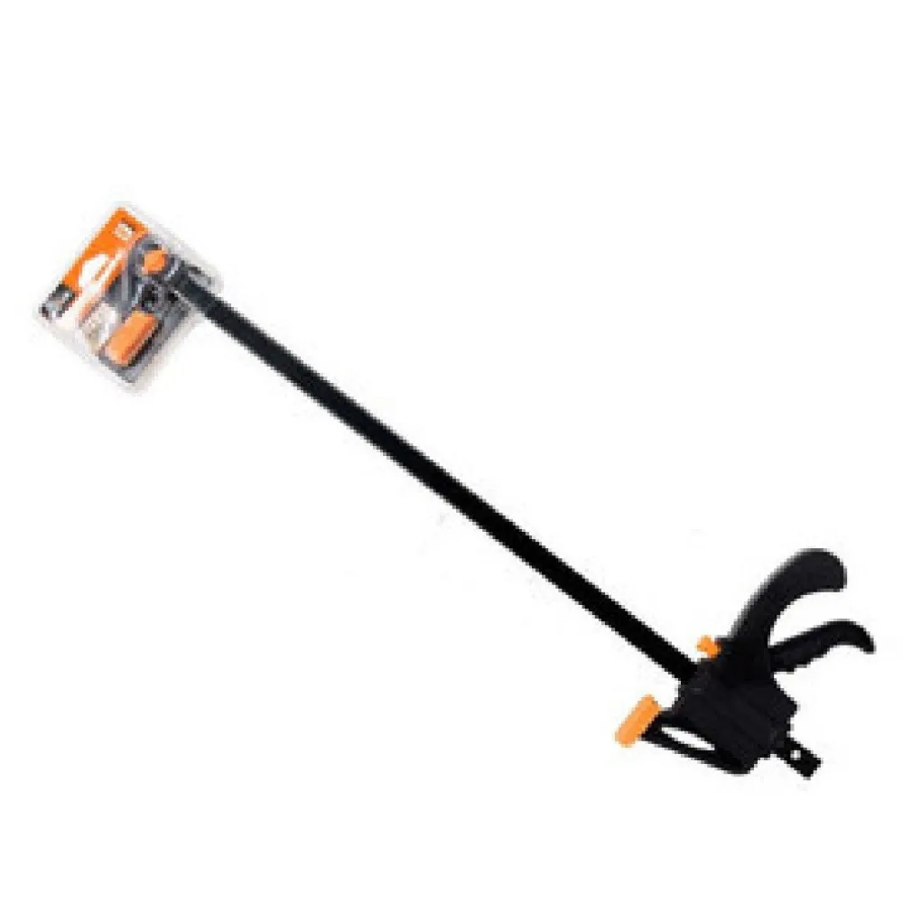 Morsetto a sgancio rapido ideale per tagliare e levigare in modo sicuro. Dotato di pulsante che consente di rilasciare la morsa in modo semplice e veloce. La struttura in acciaio e materiale plastico garantisce la lunga durata dell’utensile e al contempo lo rende versatile e leggero nell’utilizzo. Punti di serraggio rivestiti per non rovinare l’oggetto serrato. Apertura: 450 mm.