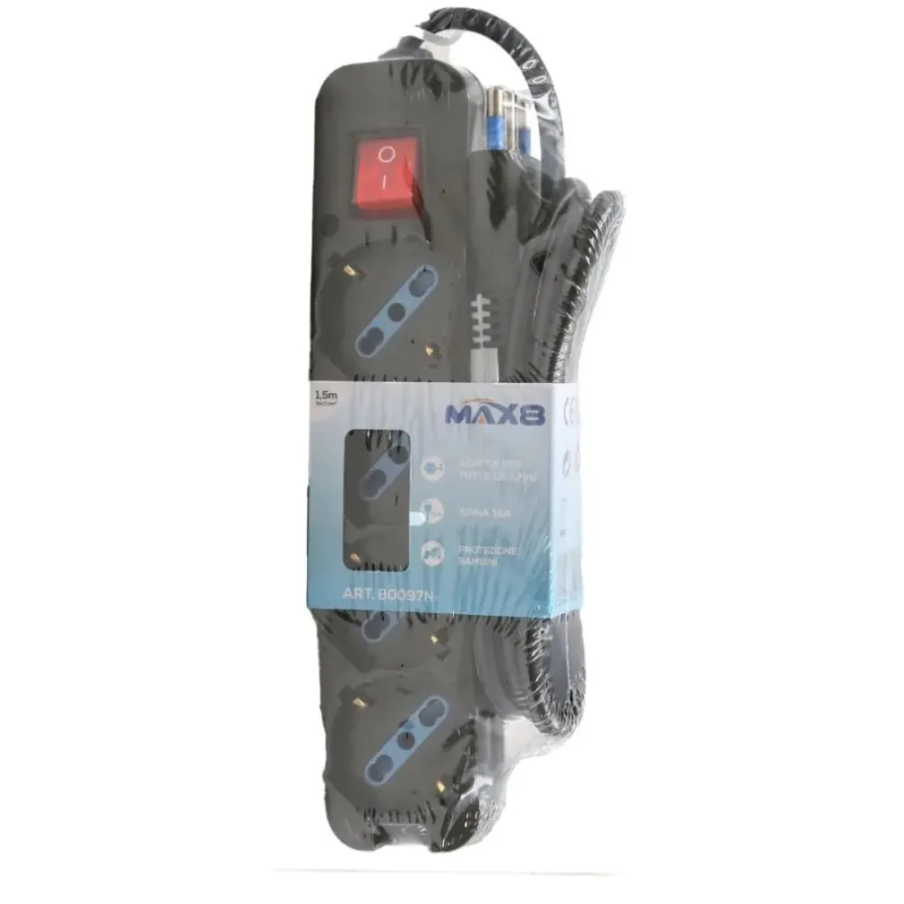 - Multipresa 4 Uscite Universali Schuko: Questa multipresa è progettata per adattarsi a una vasta gamma di spine, rendendola ideale per l’uso in diversi paesi.