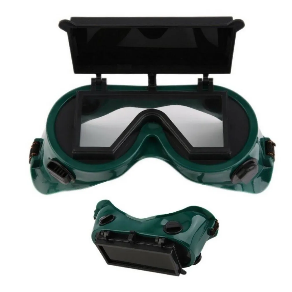 Occhiali di protezione dotati di doppia lente, una trasparente e una oscurata. Accessorio indispensabile per chi effettua lavori di saldatura. Dotati inoltre di 4 prese di areazione per evitare l’appannamento delle lenti.