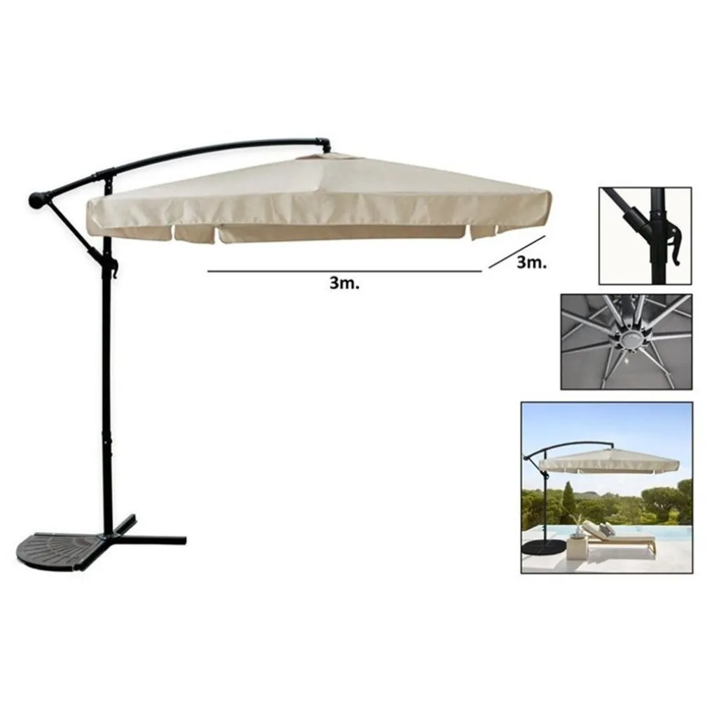OMBRELLONE A BRACCIO LATERALE DA GIARDINO 3X3MT PROTEZIONE SOLE BEIGE CON BASE 223216