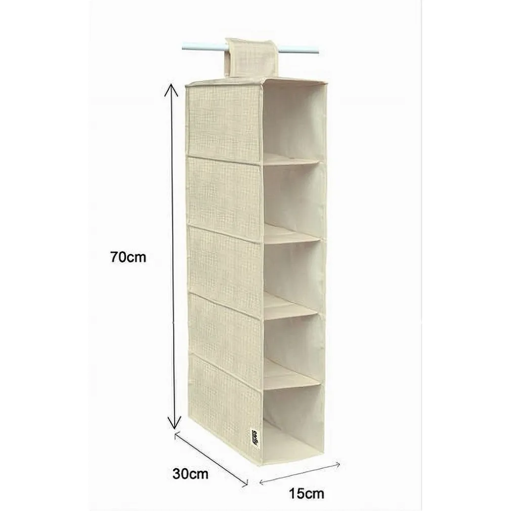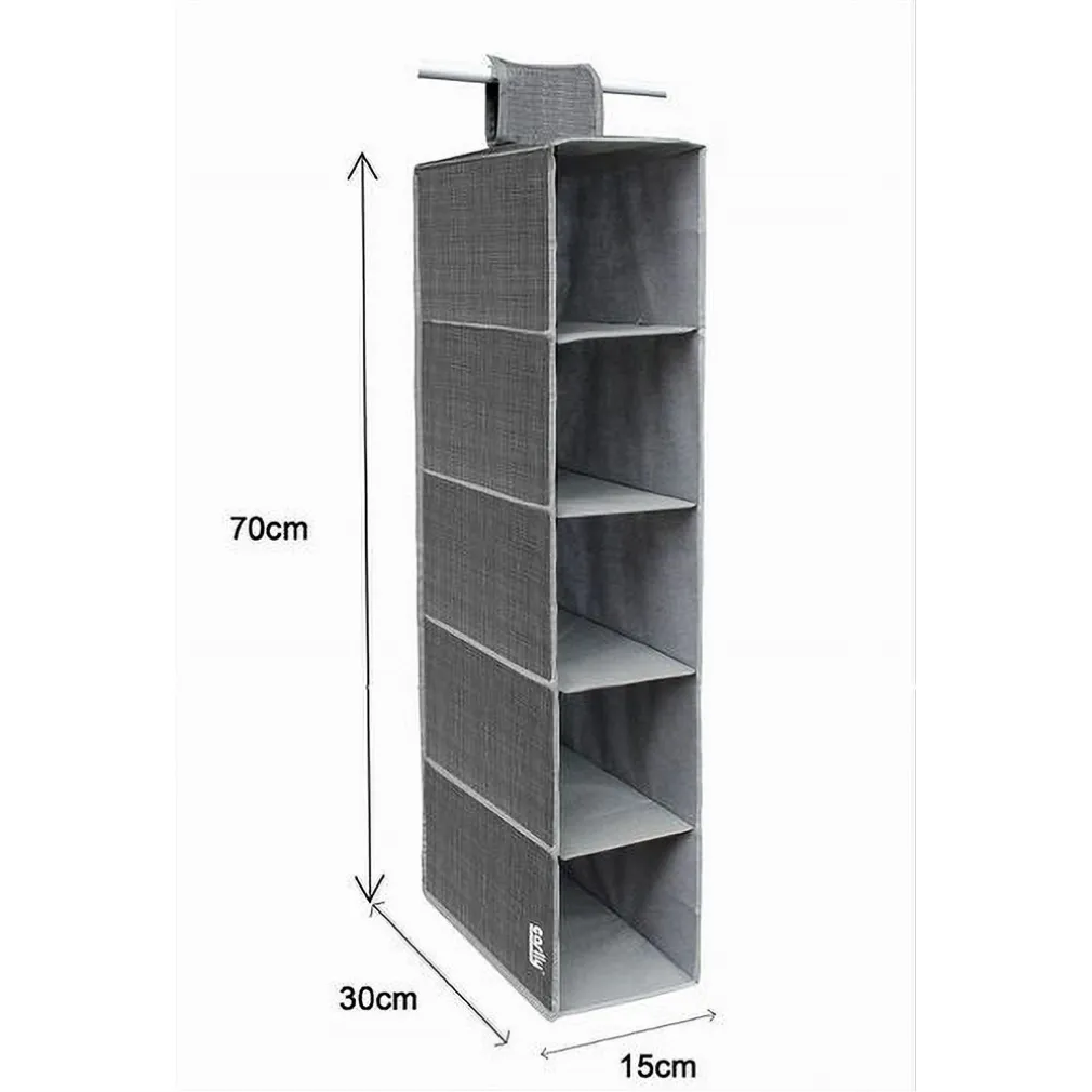 Le dimensioni dell’organizer sono 15 x 30 x 70 cm, con 5 scomparti spaziosi per massimizzare l’ordine nel tuo armadio.