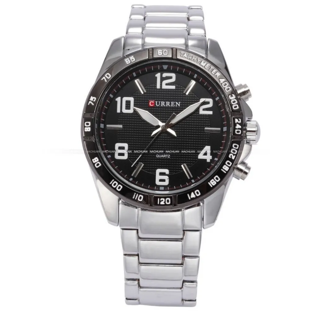 CURREN OROLOGIO DA POLSO UOMO ACCIAIO INOX ANALOGICO QUARZO QUADRANTE NERO