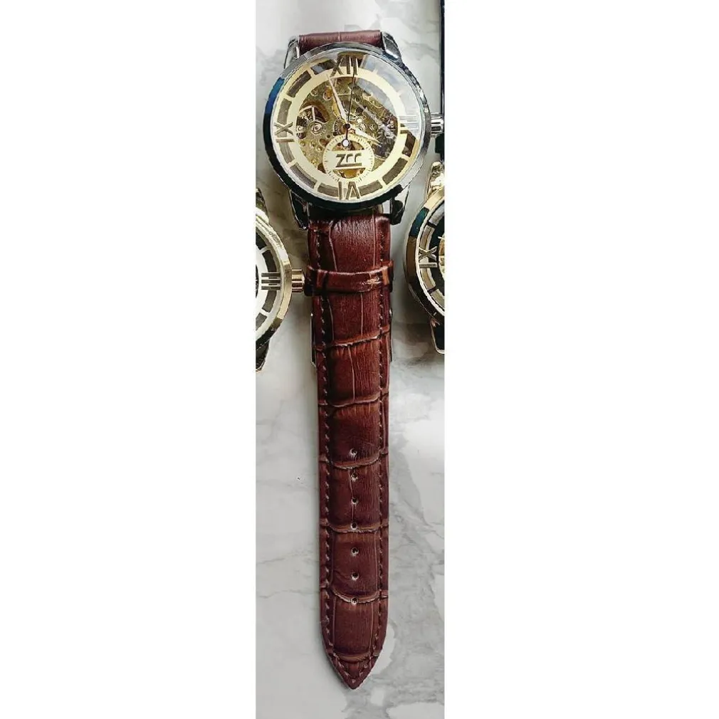 - Orologio Polso ZCC Romani Uomo Silver Automatico Cinturino Pelle Marrone Dorato