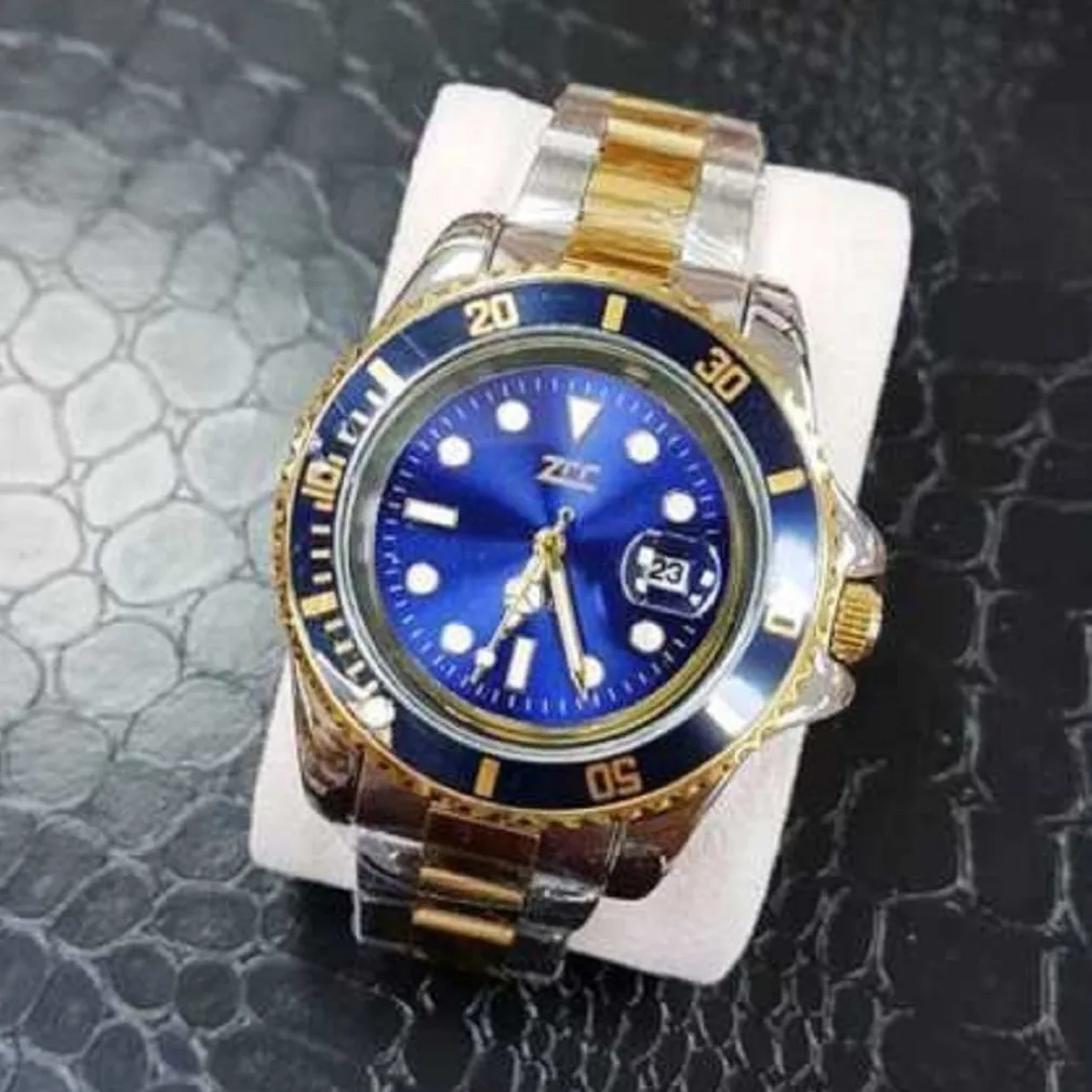 OROLOGIO POLSO ZCC SUBMARINE UOMO ANALOGICO QUARZO DATARIO ORO SILVER BLU
