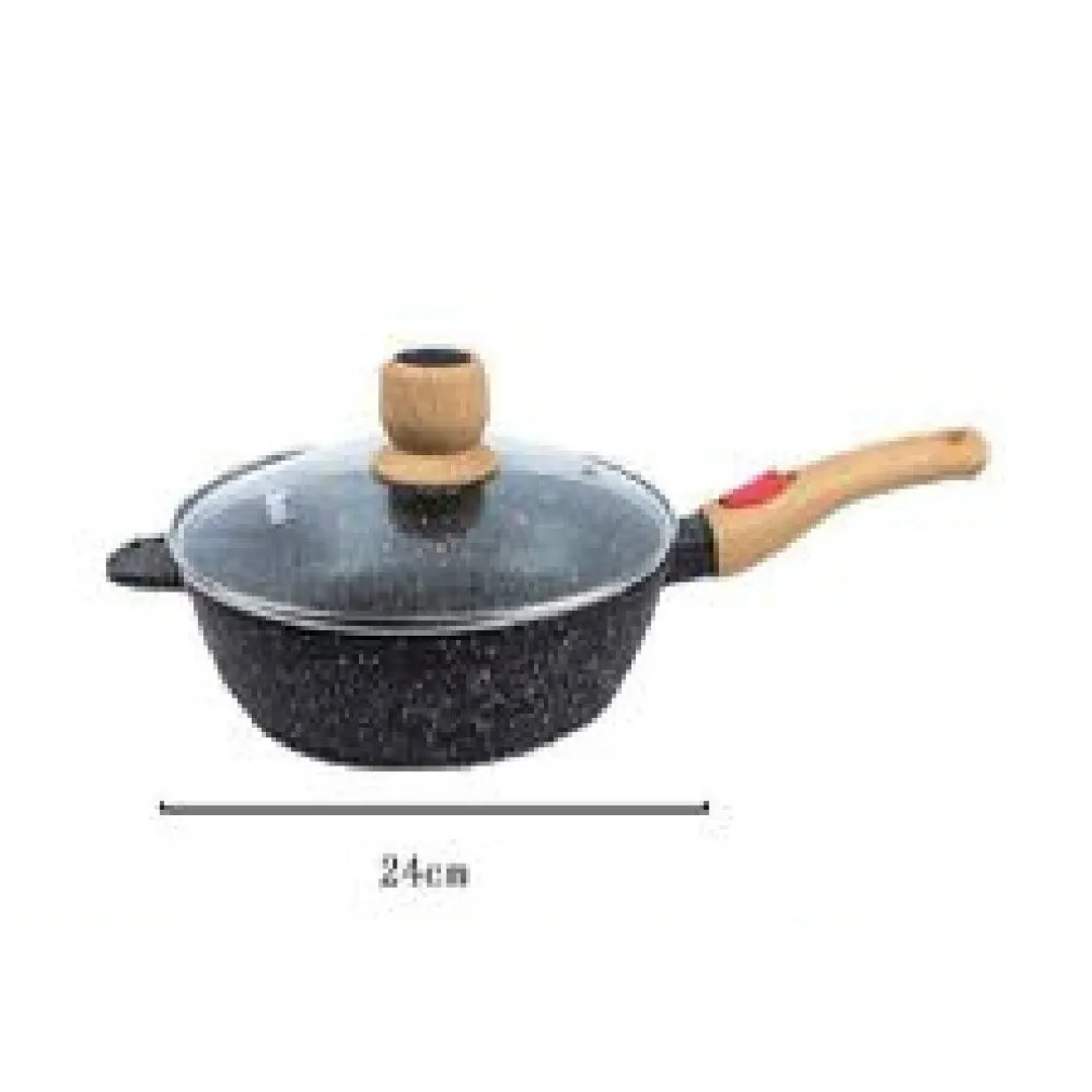 Dimensioni Ideali: La padella tonda è di 24cm, il formato perfetto per preparare una vasta gamma di piatti, dalla cottura di carne alla preparazione di deliziosi piatti vegetariani.