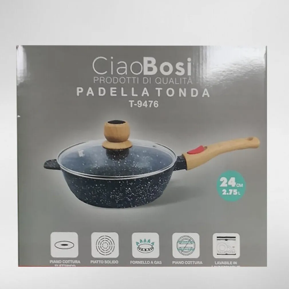 - Padella Tonda T-9476 Cucina 24cm 2.75lt con Manico e Coperchio