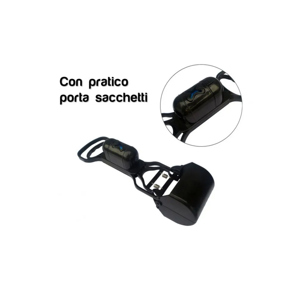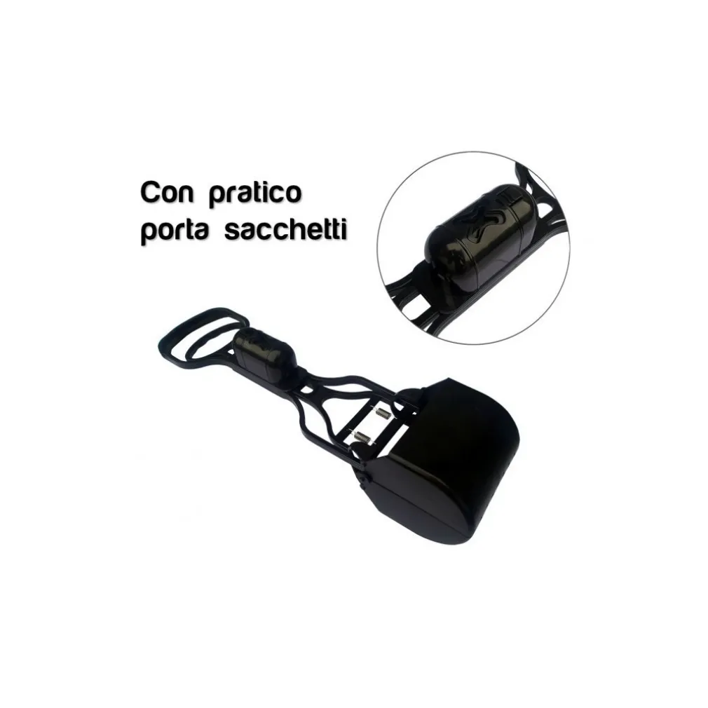 Si tratta di un articolo rivoluzionario,infatti basterà inserire un sacchetto usa e getta ( 1 rotolo è compreso nella confezione) nella pinza, raccogliere gli escrementi e gettare il sacchetto nei rifiuti. E’ inoltre dotato di un accessorio porta sacchetti che ci garantisce di avere sempre tutto a portata di mano.