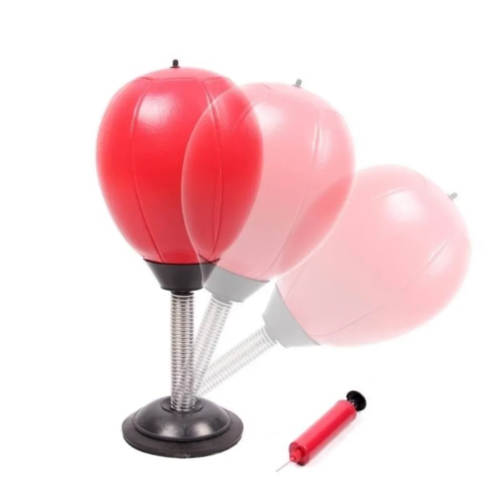 Palla da boxe da tavolo con supporto a molla e con pompa per il gonfiaggio della palla. Kit per adulti e perfetto come antistress.