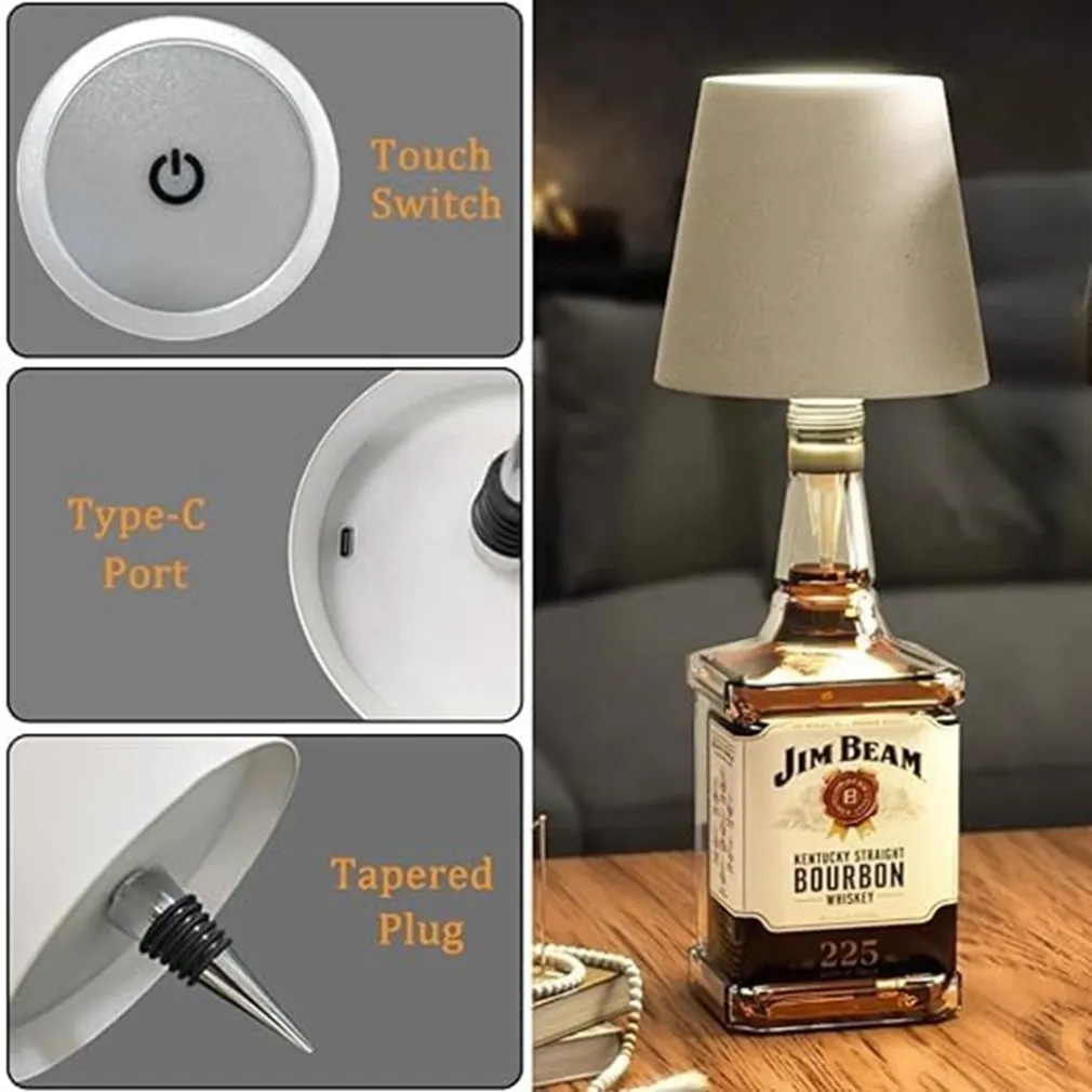 Compatibile con bottiglie di vetro: si adatta a bottiglie di vino, liquori o simili, rendendole uniche lampade da tavolo.