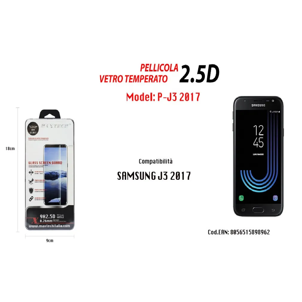 Progettato per Samsung Galaxy J3 2017, Vetro di durezza 9 – antiurto, antigraffio, tre volte più resistente delle protezioni per schermo tradizionali.