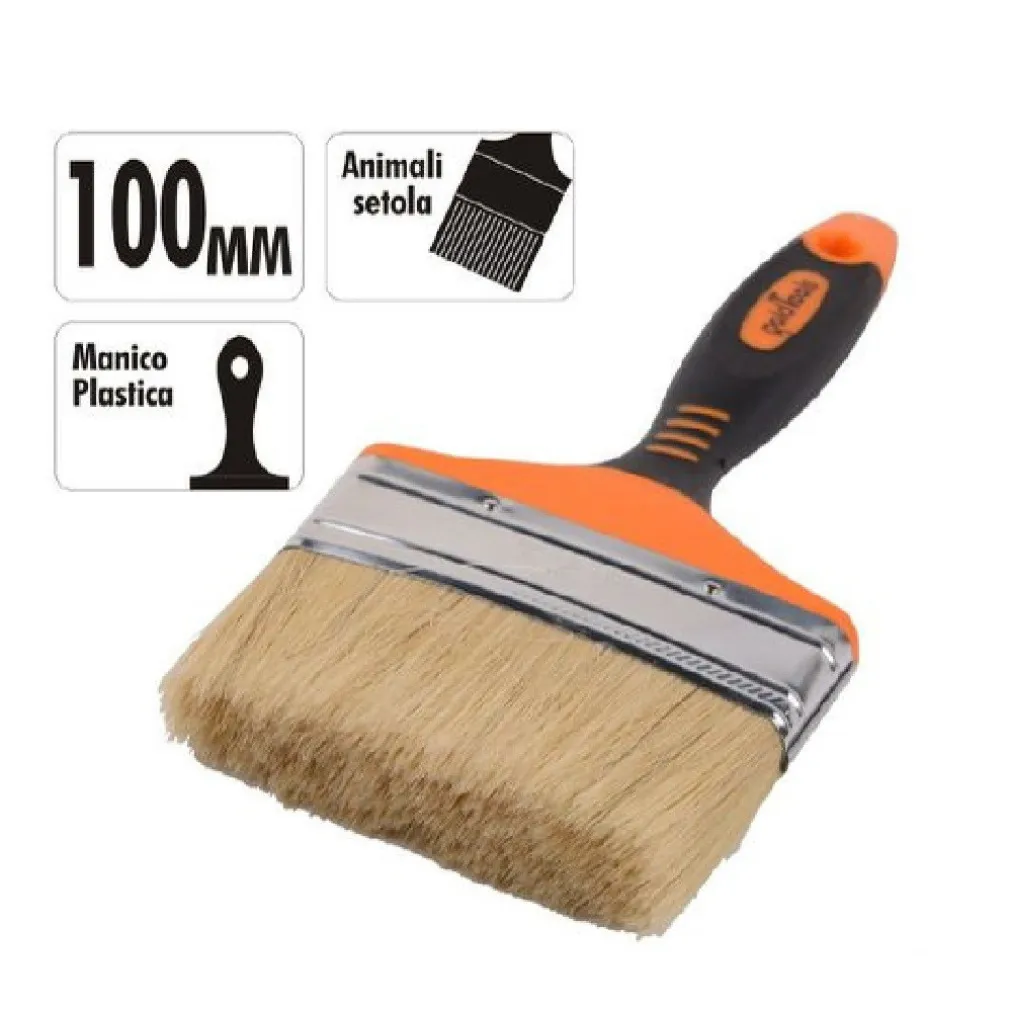 Il nostro pennello piatto da 4″ (100mm) con setole morbide è la scelta perfetta per le tue esigenze di pittura e verniciatura. Con il suo manico antiscivolo, foro per appenderlo e una robusta ghiera in acciaio, questo pennello ti offre prestazioni eccezionali in ogni progetto.