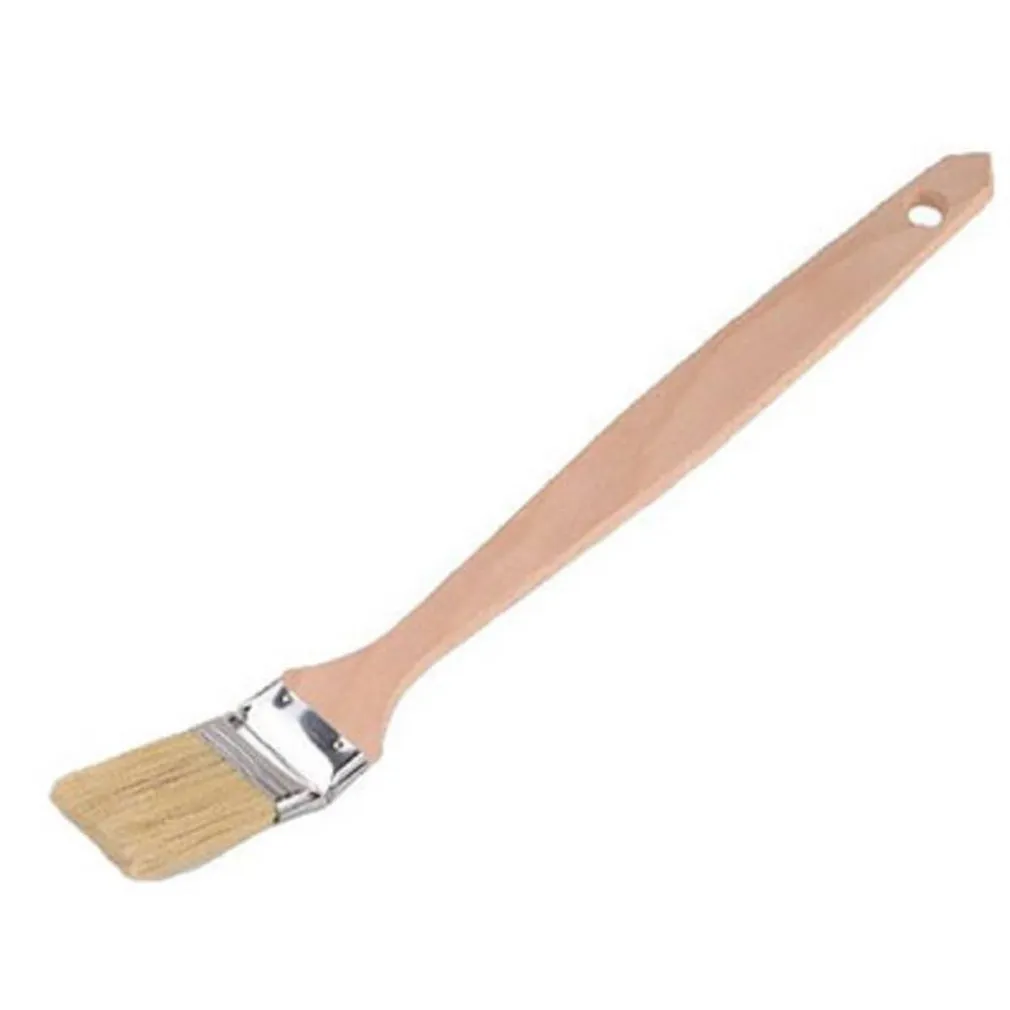 Pennello angolato per facilitare la pitturazione dietro radiatori, tubi e altre zone difficili da raggiungere. Con ghiera in acciaio inox. Manico in legno lungo 31 cm con setole bionde.