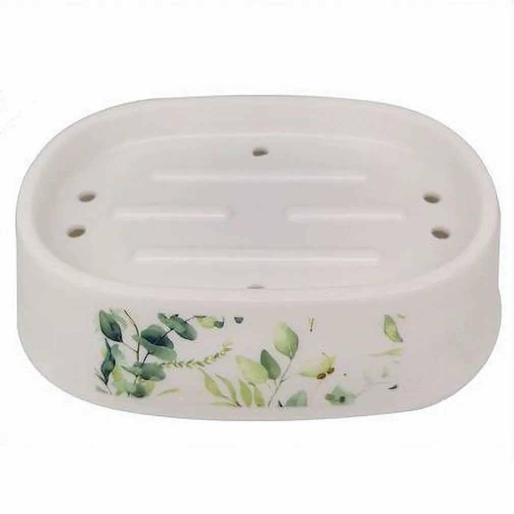 - 1 x Piattino porta saponetta decorato con fiori e foglie