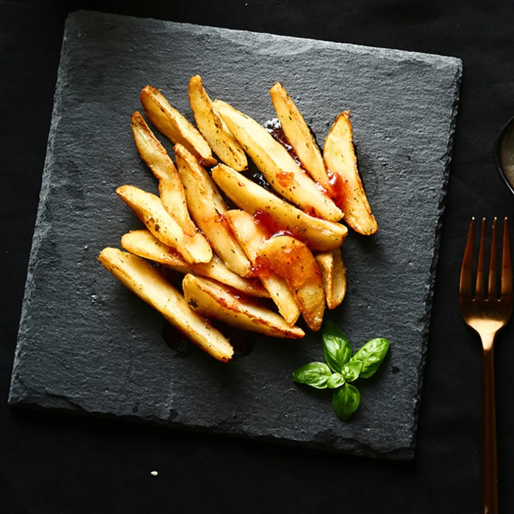 - Piatto in Pietra Ardesia Nero 35×35 cm: Il pezzo centrale perfetto per esaltare la presentazione dei tuoi piatti.