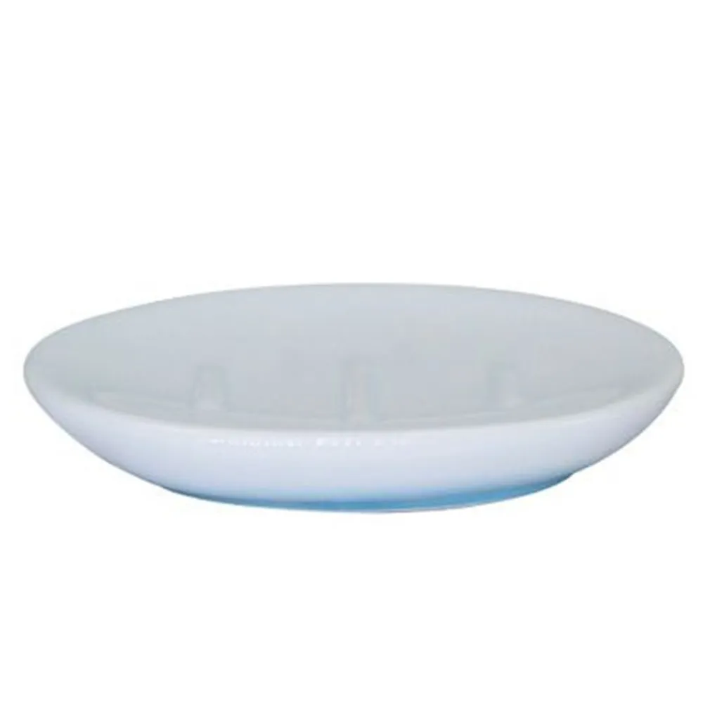 Piatto Piattino Portasapone Saponetta Bagno Ceramica Bianco Azzurro Arredo 59912